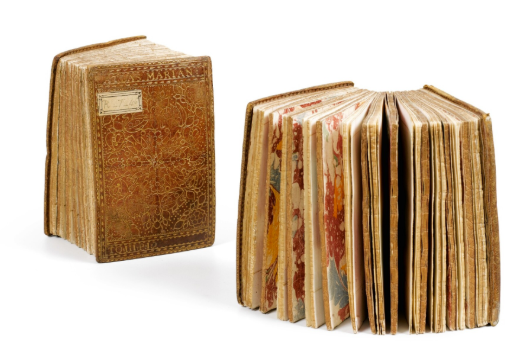 Le 18 juin 2019, lors de la vente Livres et Manuscrits, un exemplaire de l’Atlas Marianus de Wilhelm Gumppenberg (lot 42) fut dispersé. L’ouvrage, imprimé à la fin du XVIIᵉ siècle, stupéfia les experts par sa structure : contrairement aux versions massives et articulées que l’on rencontre parfois pour ce texte, celui-ci présentait une reliure sans dos d’une finesse absolue. Il était décrit ainsi au catalogue: