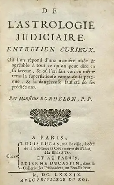 Sur la page de titre, sans faste ni prétention, on lisait : Entretiens curieux sur l’astrologie judiciaire, par Laurent Bordelon, Paris, 1689. Rien, à première vue, qui appelât l’émerveillement. Un ouvrage parmi tant d’autres, né de cette fin de règne de Louis XIV où l’esprit mondain aimait encore jouer avec les restes de la superstition, feindre d’y croire pour mieux s’en moquer. Un livre de conversation, plus destiné à distraire qu’à instruire, que l’on imagine aisément posé sur une table de salon, feuilleté entre deux visites.