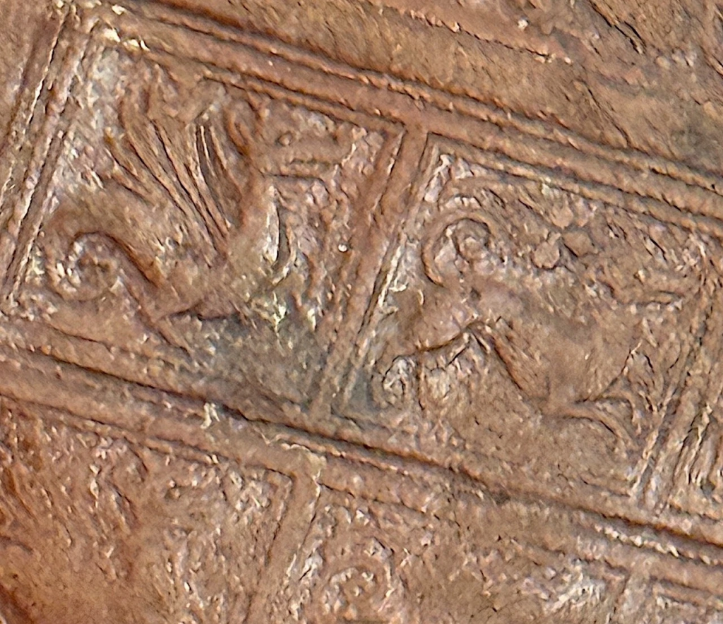 Impression lyonnaise de 1495, incunable signalé. Reliure estampée à froid avec décor de dragons.