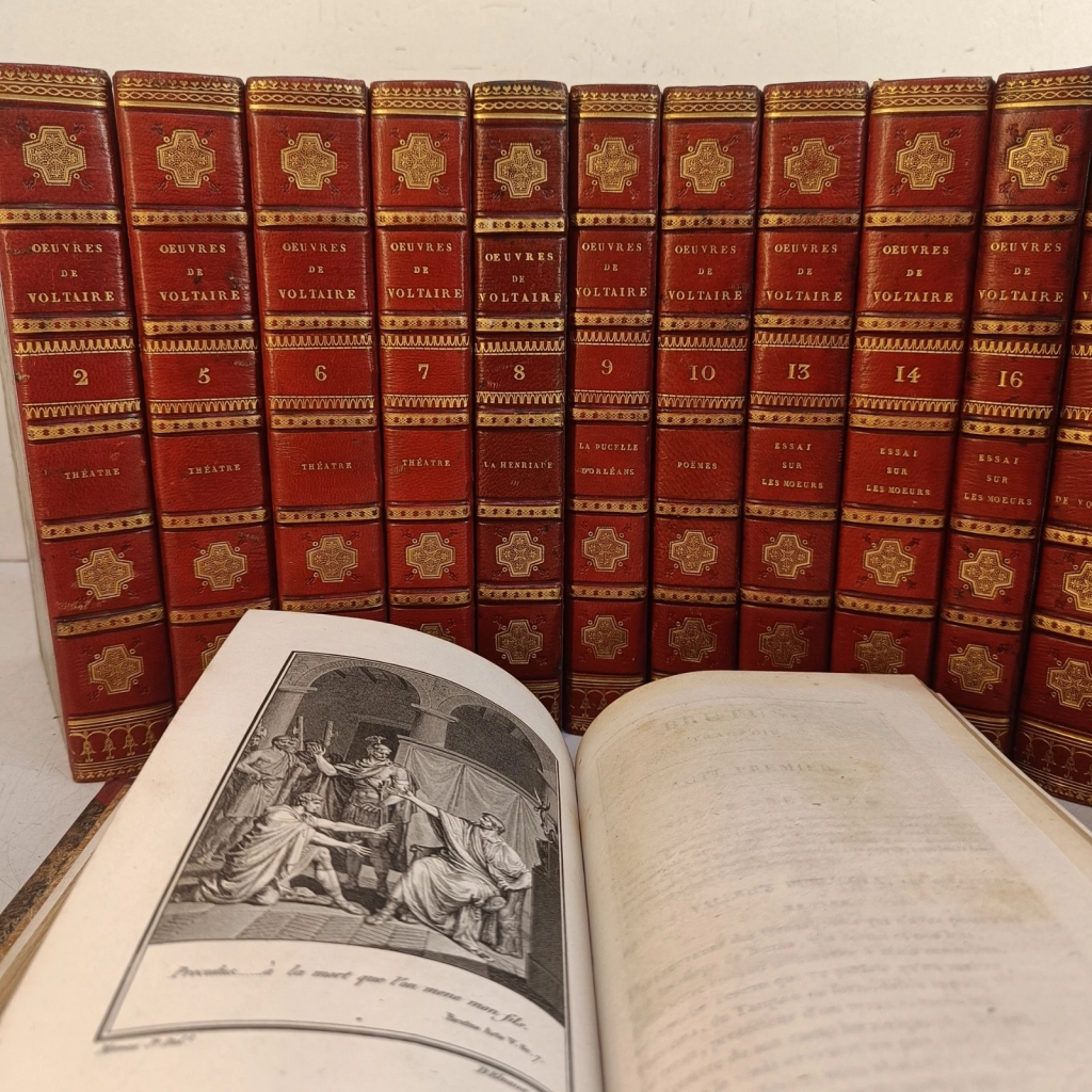 Série sur Voltaire, mention « monumentale ». Reliure Thouvenin signalée, datée 1819 dans le titre.