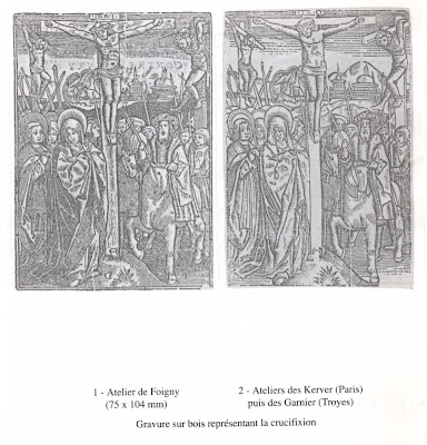 Par contre, Foigny posséda au moins un autre bois attribué à Tory, représentant une crucifixion et signé «GT»: ce bois ressemble étrangement à celui, non signé et à 6 soldats au lieu de 7, utilisé successivement par Yolande Bonhomme en 1546 ? Thielman (II) Kerver en 1585 et Jean Garnier, imprimeur à Troyes au xviiie siècle.