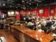 La pièce est vaste, boisée, murs clairs. Rideaux lourds filtrant une lumière déjà tombante. Sur la table centrale, un lutrin vide. Autour, des chaises encore chaudes. Sur un guéridon, un compas ancien, un niveau à bulle posé comme un bijou. Au sol, à deux pas du lutrin, le corps. Un homme d’une cinquantaine d’années, costume gris, chemise blanche, cravate étroite. On me dit : architecte, invité d’honneur pour une causerie sur Vitruve.